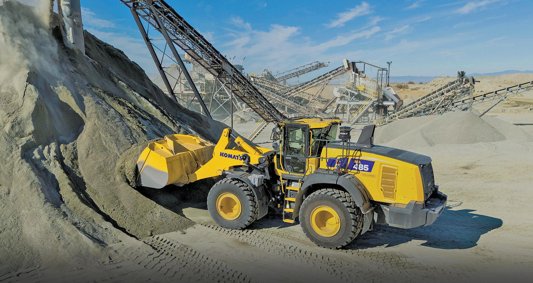 Plus, Komatsu recently introduced its new WA475-11 and WA485-11 wheel loaders. Both offer lower fuel consumption and more engine power compared to their predecessors. Yard loader configurations designed to support higher productivity in aggregate applications are available for both models.