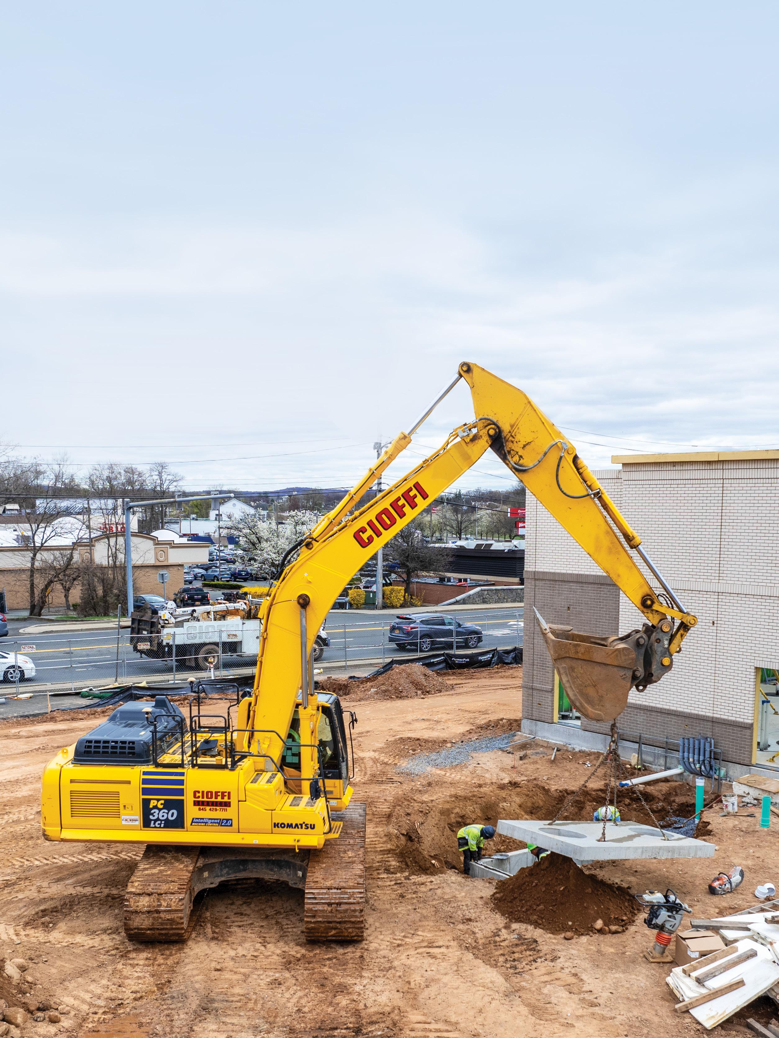 To enhance efficiency, Cioffi Excavating Services has modernized its fleet in recent years, investing heavily in Komatsu intelligent machine control (IMC) equipment by partnering with C.N. Wood Co Inc