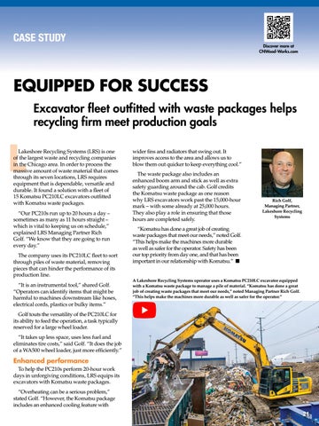 EQUIPPED FOR SUCCESS Excavator fleet outfitted with waste packages helps recycling firm meet production goals