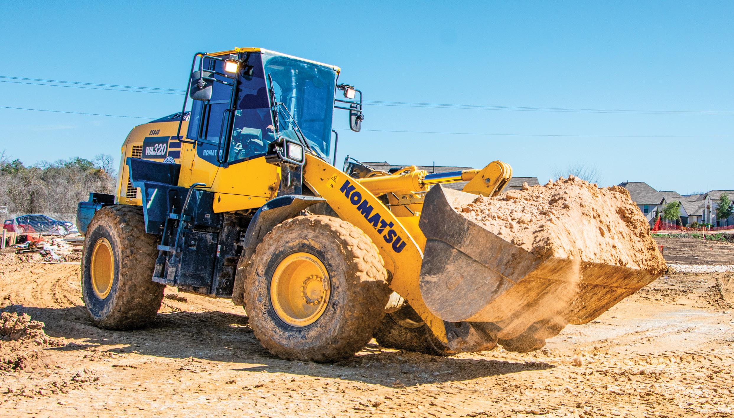 On a job site in the Austin area, an operator pushes material with a Komatsu D61EXi-24 Intelligent Machine Control (IMC) dozer. Vice President Eric Houdek commented, “The dozers eliminate a significant amount of surveying, staking and grade checking, which further reduces downtime.”