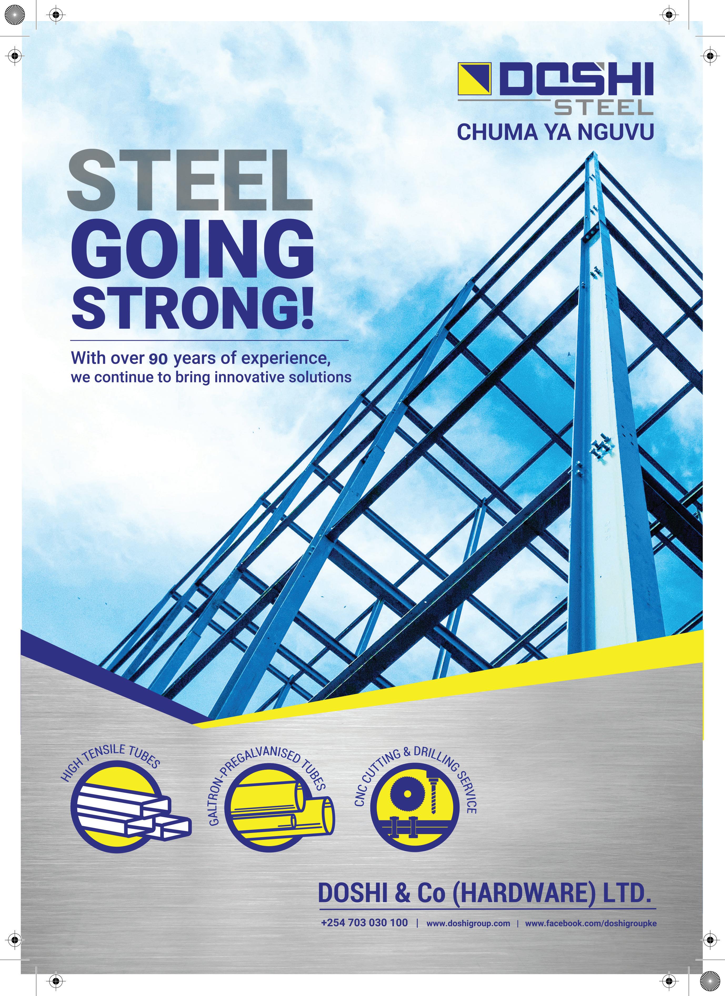 Every product has a different story. Orders delivered to you, at your convenience, wherever you are located! We o er great pricing on special length work, as well as providing cut and bend services +254 759 312 882 +254 728 482 510 sales@accurate.co.ke www.accurate.co.ke Ricky Road, Off Enterprise Road, Industrial Area, Nairobi, Kenya @AccurateSteelMillsLimited @AccurateSteelKE Accurate Steel Mills Ltd © Arobia Creative Consultancy