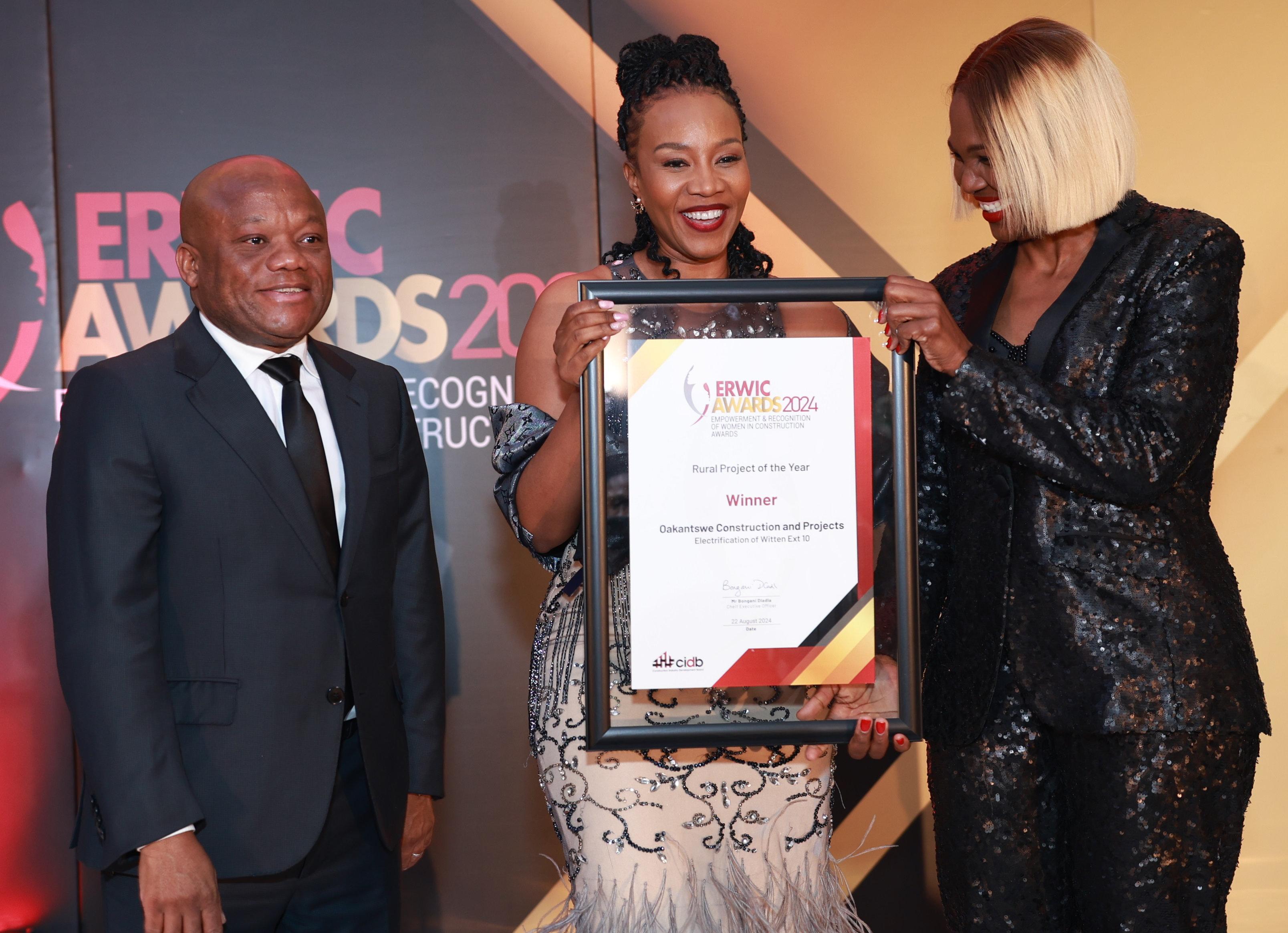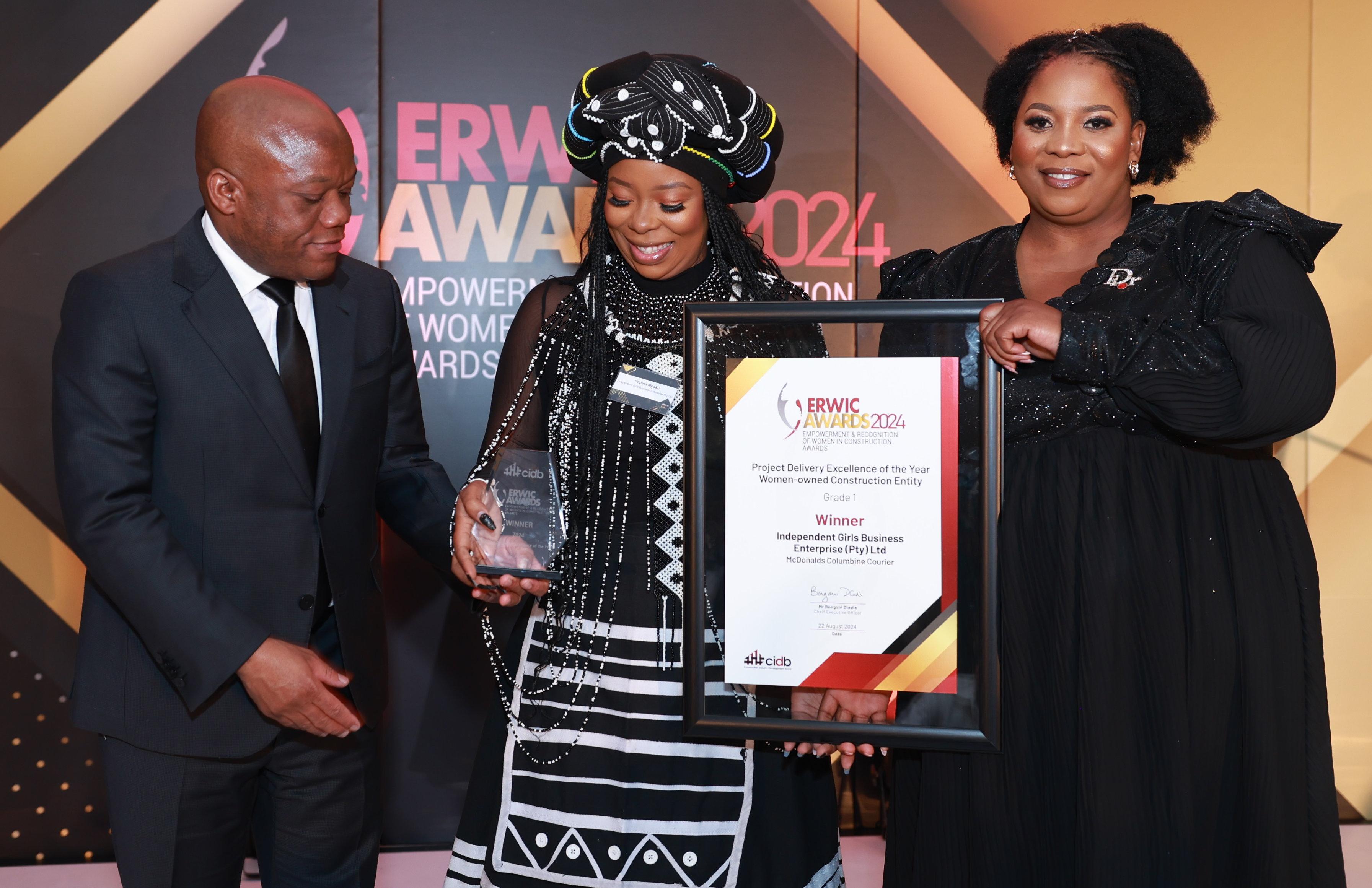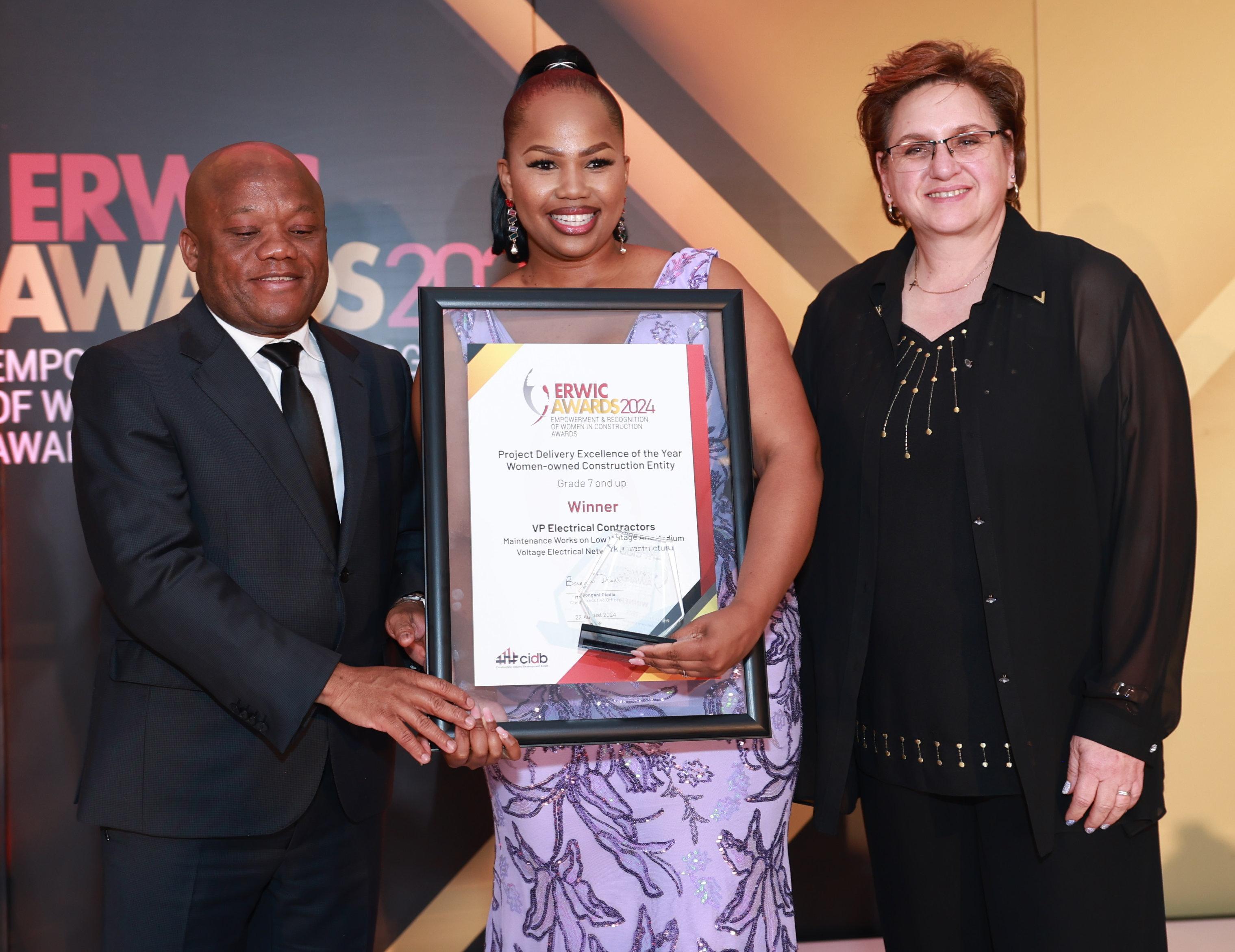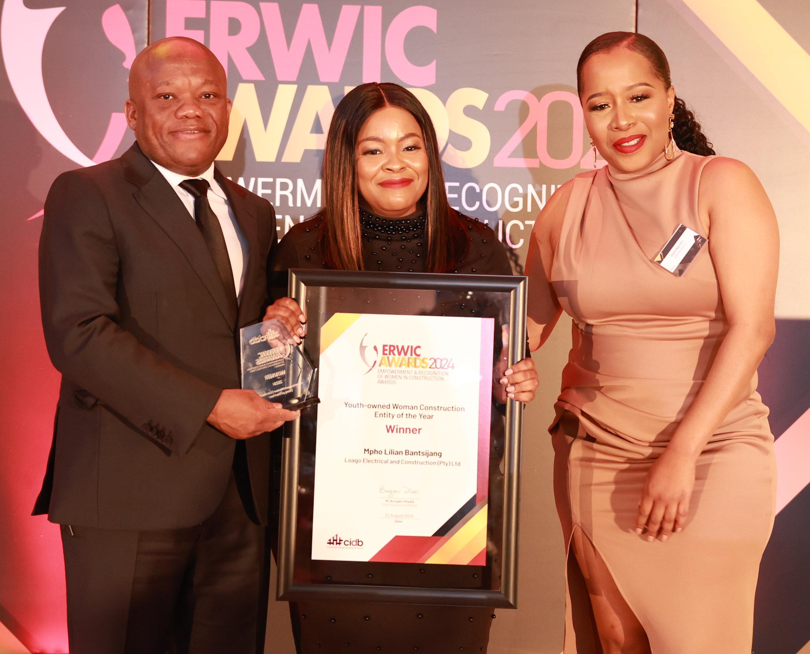 LoagoElectricaland Construc�on(Pty)Ltdwonthe Youth-OwnedWoman Construc�onEn�tyoftheYear Award.Secondplacewentto ManyawusiTrading Enterprises(Pty)Ltd,while SistersinConstruc�on(Pty) LtdandIndependentGirls BusinessEnterprise(Pty)Ltd �edinthirdplace.
