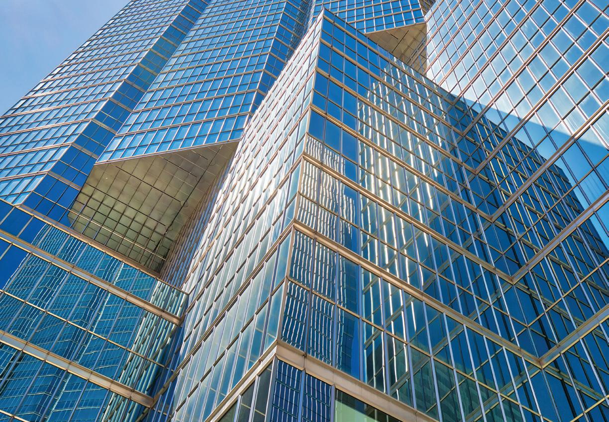 part of the canopy framing and column covers. The gleaming exterior is cleaned three to four times a year with neutral detergents and water and a mild abrasive in the spring. In 2010, the Sun Life Centre was awarded LEED Gold certification under the Canada Green Building Council’s LEED for Existing Buildings.