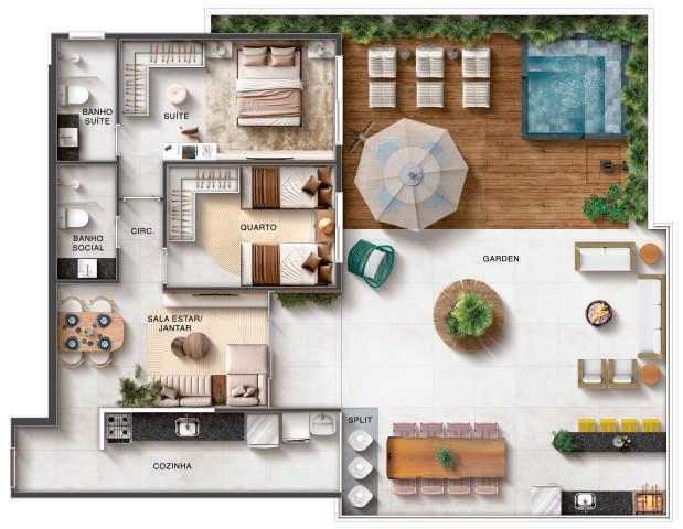 A Construtora, sempre que houver necessidade, poderá alterar o projeto para a aplicação de normas técnicas de execução de obras ou por determinação e exigências dos orgãos públicos ou de empresas concessionárias. Todas as imagens são meramente ilustrativas e podem sofrer alterações sem aviso prévio, inclusive de cores. Móveis, adereços, objetos de decoração e equipamentos das áreas comuns estão inclusos no preço. Móveis, adereços, objetos de decoração e equipamentos dos apartamentos não estão inclusos no preço. Leia atentamente o contrato e memorial descritivo. Creci: 2877J