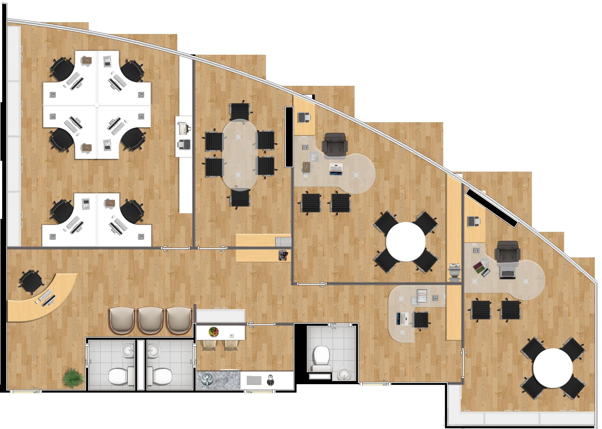 As salas do Canal Office Tower foram projetadas para promover integração, produtividade e conforto, comvistapanorâmicaeiluminaçãonatural.