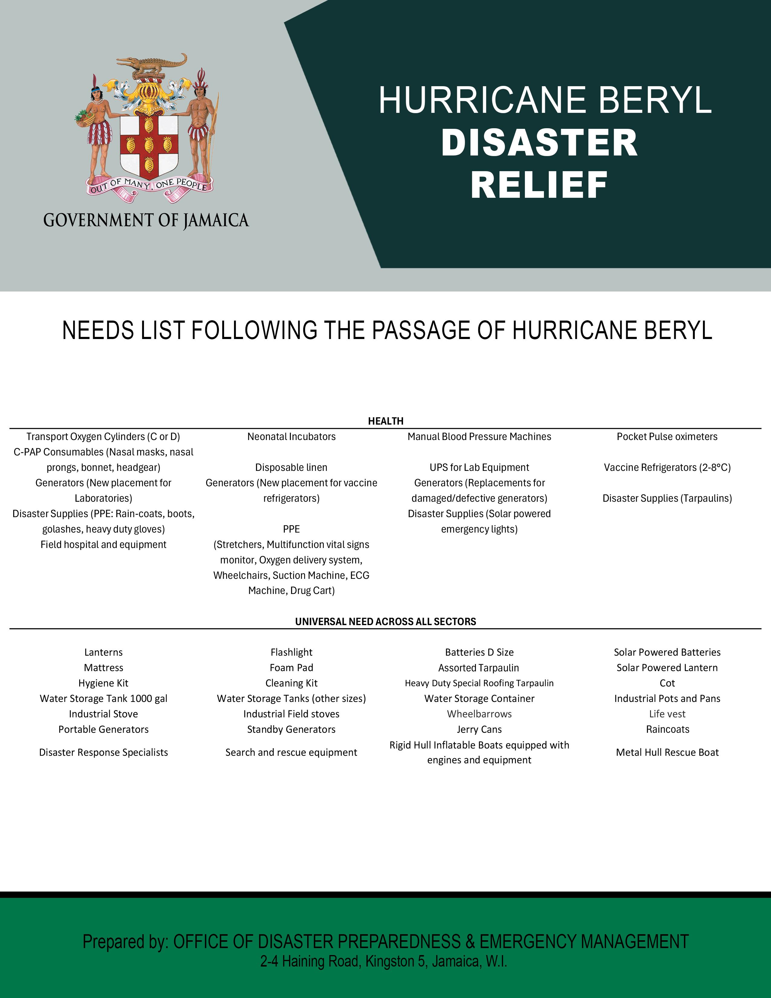 Caricom Consular Corps Hurricane Beryl Disaster Relief Needs