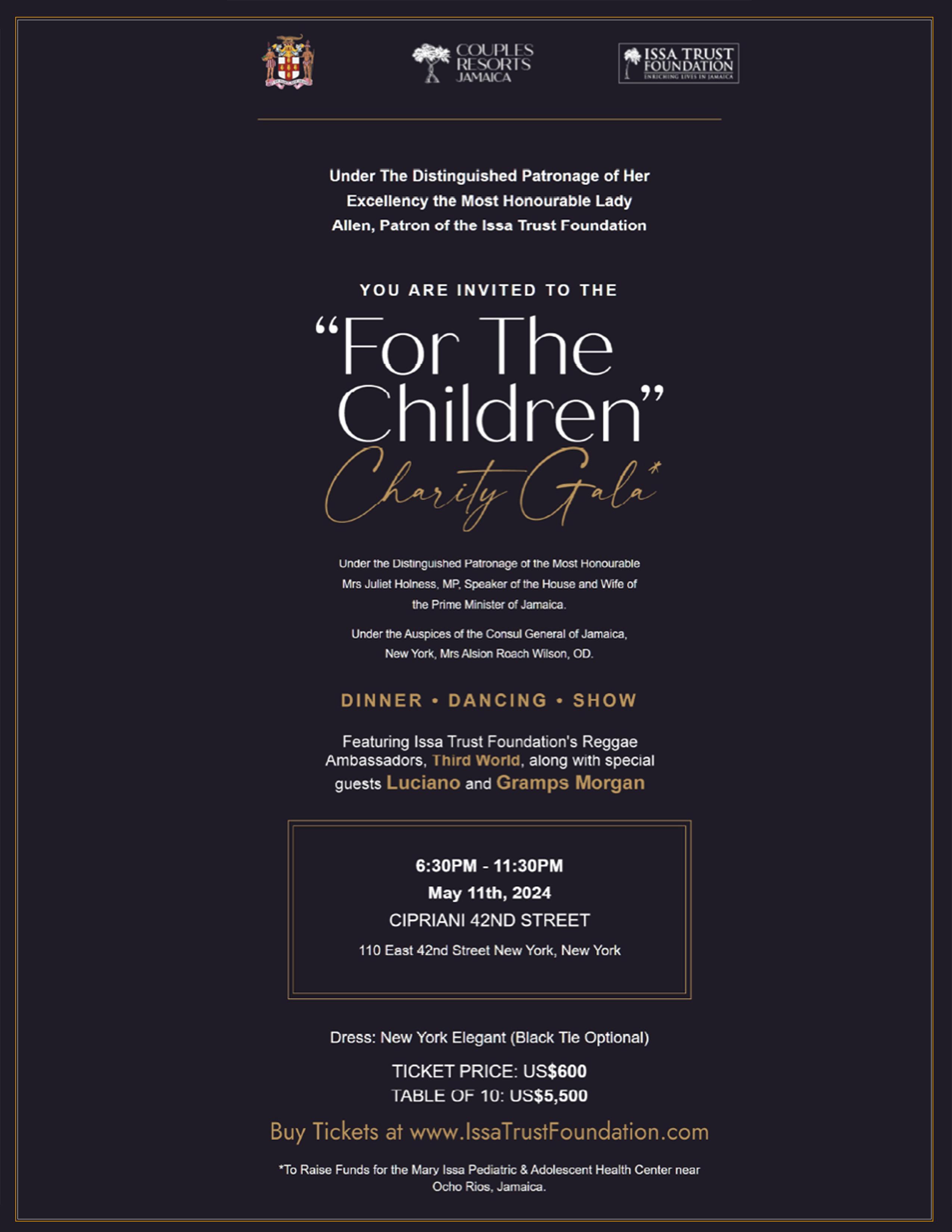 “We are looking forward to our second ‘For The Children’ Gala at Cipriani 42nd Street on Saturday, May 11, with our goodwill reggae Ambassadors