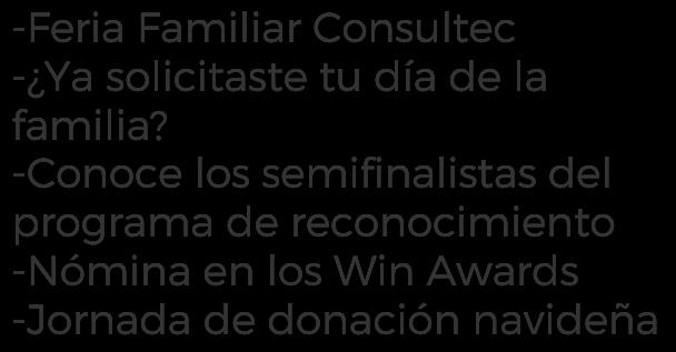 Neiva Neiva No01234 F e r i a F a m i l i a r c o n s u l t e c Villavicencio Villavicencio F e r i a F a m i l i a r c o n s u l t e c No:01234 Puedesir on familiares No01234 Barrancabermeja Barrancabermeja F e r i a F a m i l i a r c o n s u l t e c Bogotá Bogotá No01234 F e r i a F a m i l i a r c o n s u l t e c Feria Feriafamiliar familiar Consultec Consultec 2023 2023 ¡Celebra con nosotros ¡Celebra con nosotros el elaniversarioaniversariode de Consultec! Consultec!