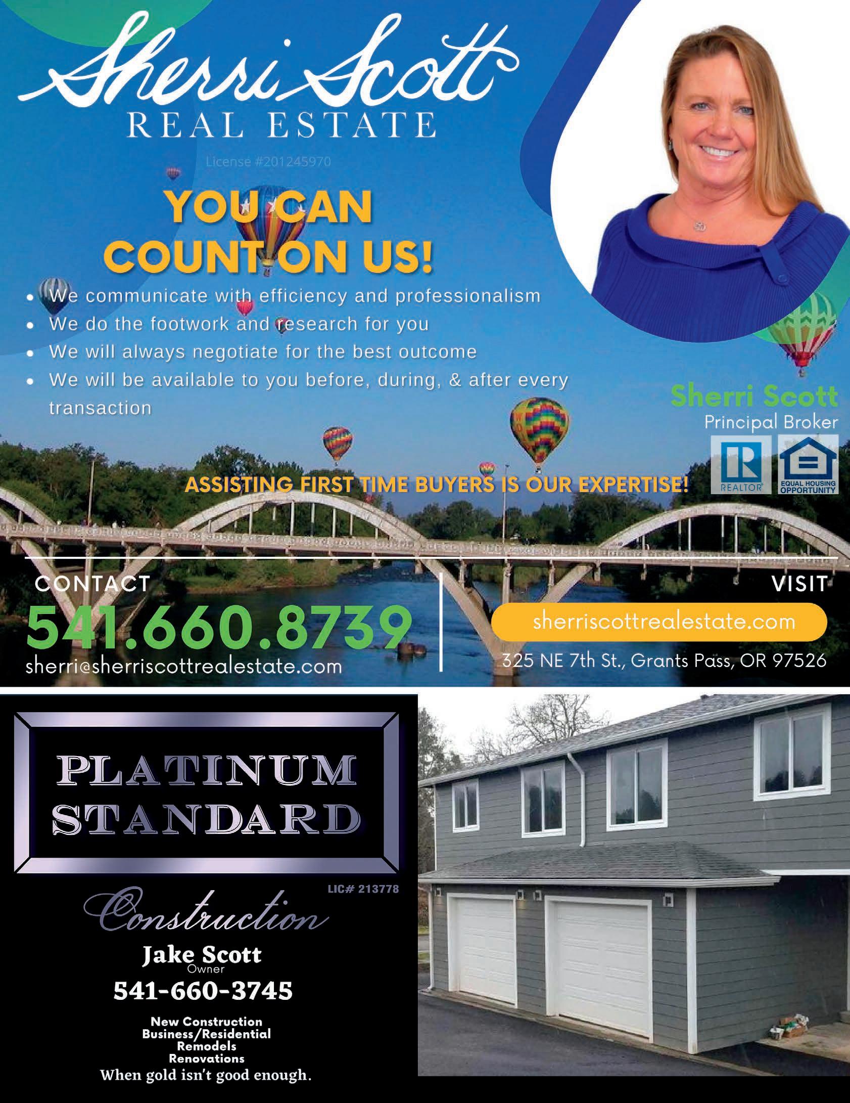 My goal as the Editor-in-Chief is to continue a tradition of bringing positive attention to our wonderful community. With so much to offer, so many stories to write about our people, businesses and outdoors, GP Magazine is the perfect venue for sharing, whether in print or digitally. If you have any ideas for stories please don’t hesitate to reach out. For now, please sit back and enjoy the magazine as we continue shining a light on the unique community of Grants Pass.