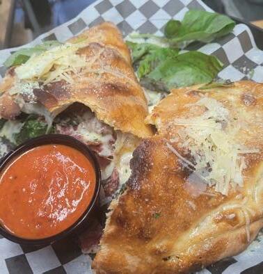 Catalyst Pizza Co. at the Weekend Beer Co. sells hand tossed brick oven pizzas whole and by the slice. Also garlic knots and homemade meatballs.