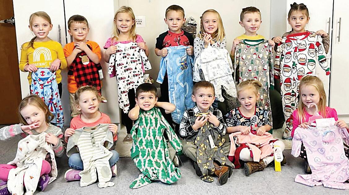 Firestone Charter Academy Preschoolers holding donated pajamas.
