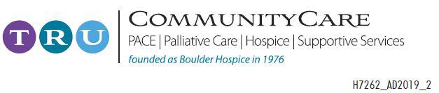 Program of All-inclusive Care for the Elderly Coordinated health care Transportation | Social services In home care | Interactive day program Rehabilitation Services Call today to see if PACE is right for you or a loved one. 303.926.4745 • (TTY 800.659.2656) Or make a referral at pace@trucare.org Helping seniors age in place. H7262_AD2018_CC2019_CMSapproval10.25.18