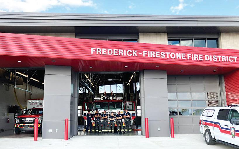 Frederick-Firestone Fire District is proud to announce the grand opening of their newest station, Station 5 located at 3725 Glacier Way, Frederick. The District will be responding out of Station 5 in the District’s new ladder truck and ambulance. This state-ofthe-art fire station was designed to enhance the safety and wellbeing of our crews all while providing quicker response times for our community.