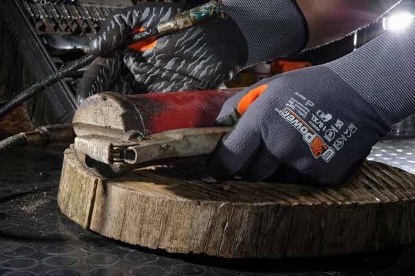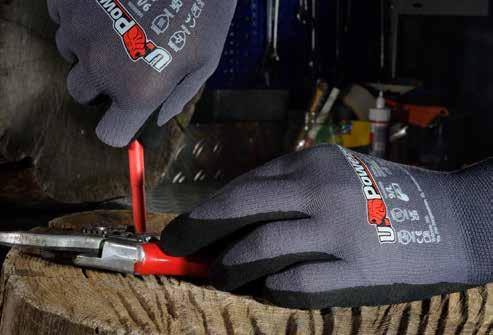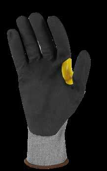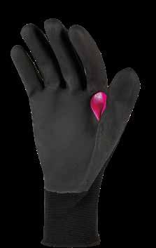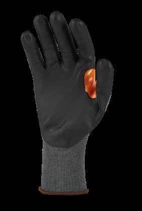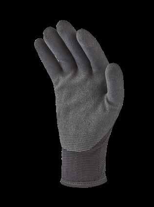• Palm: coated with a special ‘rubbery’ effect soft latex foam with an embossed finish for exceptional grip on dry, wet or slippery surfaces