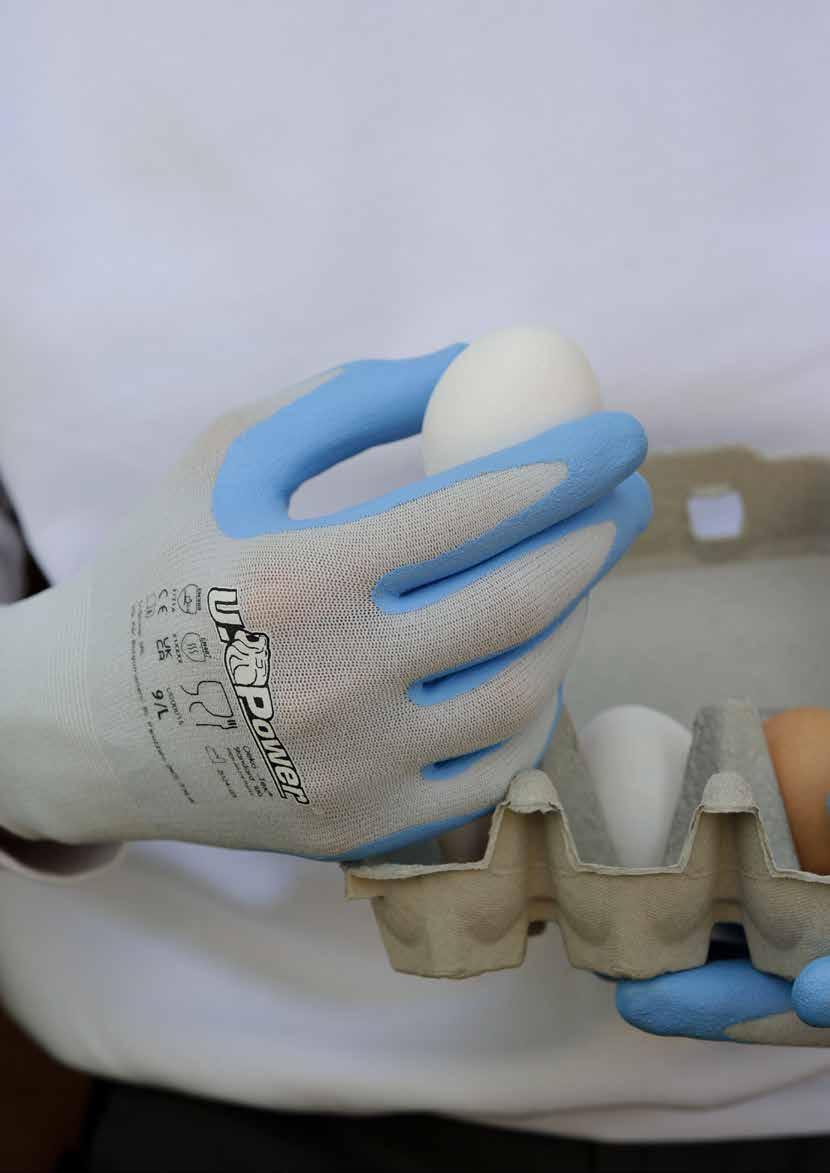 • SGF TECH allows the glove to have cut protection despite not having glass + steel fibres inside, avoiding skin irritation during its use