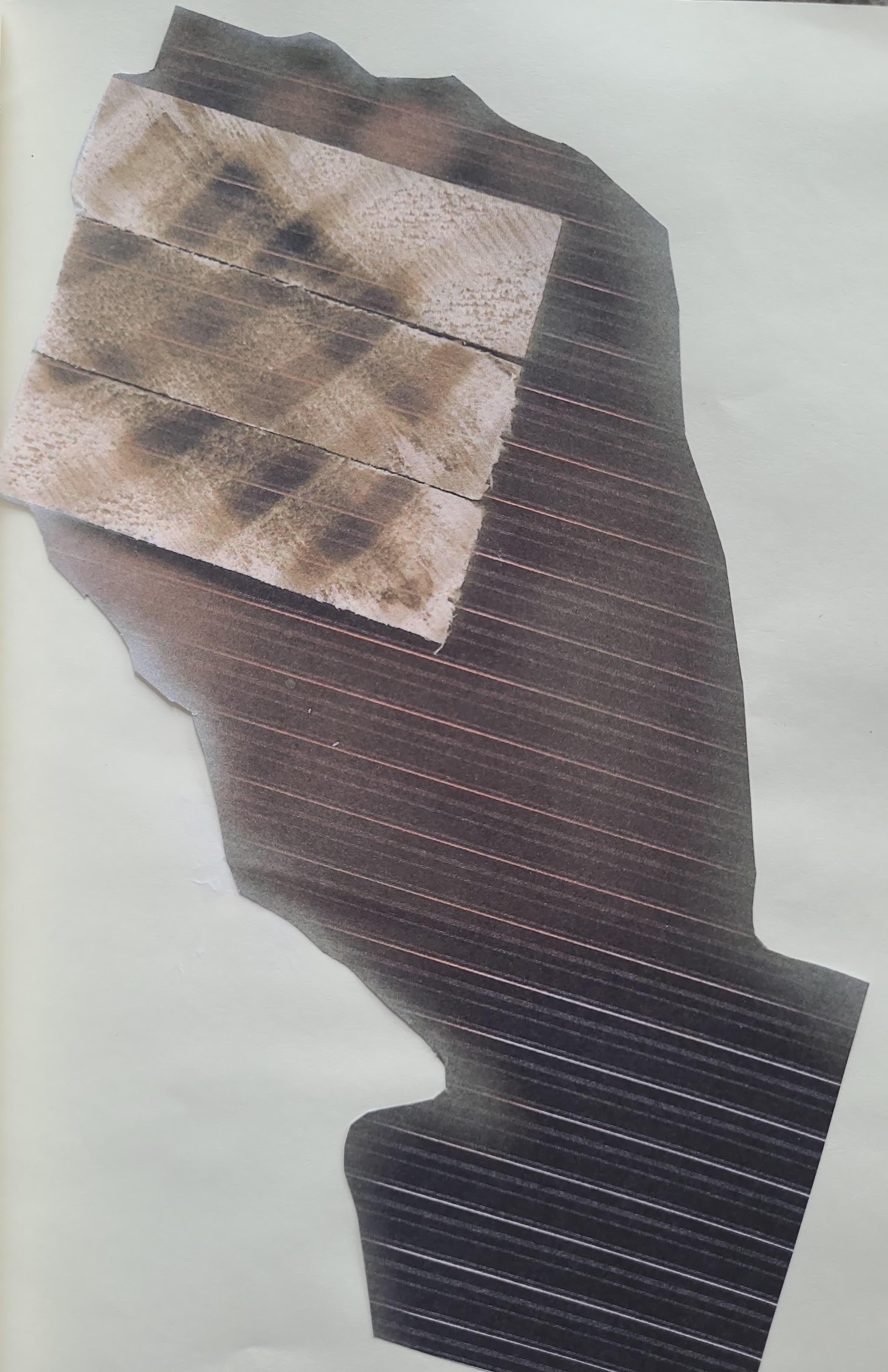 Imagens produzidas com peças de madeira, seguradas com uma das mãos, escaneadas e impressas, depois coladas em papel.