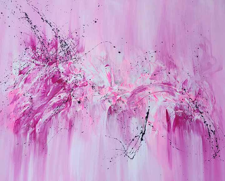 As an emotional painter, she works with the inner world that is reflected in each of us. Her painting is telling a story and convey words that are giving a message. As an emotional creator playing with his thoughts, showing them proudly to the world, she combines visual and mental perception. The image is the total of all sensations, so it remains forever. She wants to merge everything into one. Forever. Creating intuitively she most enjoyes with a combination of acrylic paint, spatulas and brushes, letting the music and thoughts come together on the canvas, where the unexpected becomes the expected or surprising. Ideas after ideas assemble images like a puzzle. Sometimes the painting is accompanied by poetry or words that have found their own way, this is when the canvas speaks to her. Try to stop for a moment and listen to the colours. You see colours that speak to you and communicate more than what is on the surface. Try to see things differently, try to question yourself. What are your feelings and how do words and images affect you ? Maybe then you will see the world differently, a world that will make your thoughts dance.