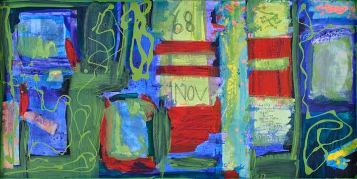 Im a mixed media abstract artist. Im greatly influenced by abstract expression and the artists and images from that art movement. I usually incorporate a grid into the first layer of my paintings. The grid represents the matrix of our lives. The thousands of twists turns and decisions we make that shape our lives.I also use a paste that goes onto the top layer of my paintings.The paste gives the work a textural 3D effect to the paintings. My work is about a deeper introspective feeling. Its hard to describe where its coming from or what it exactly means. The paintings just sort of come to me and stay in my mind until Im compelled to make them. I think about the colours to use and the composition of the painting. I contemplate the details for days months and sometimes years. When I feel i have the composition right I set out to make the painting. I have the composition in mind but the colours are generally intuitive and spontaneous. Sometimes when I paint tits like a meditation. When I’m finished I often wonder how did I do that?