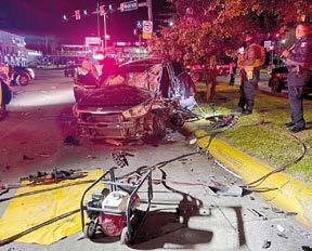 la camioneta impactó con su parte frontal uno de los coches del automóvil compacto, que incluso fue proyectado hacia un camellón, donde fue proyectado contra un árbol.