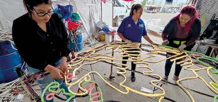 Previamente, trabajadoras de la dependencia se esmeraron en la rehabilitación y creación desde cero de las figuras luminosas, entre ellas banderas, águila monumental, pendones, rostros de héroes y grecas tricolores.