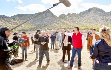 Elisa Haro, titular de la Secretaría de Turismo, junto con la Secretaría de Seguridad Pública, dieron la bienvenida al destacado actor durante el inicio de la filmación en el poblado de Chinacates, ubicado en el municipio de Santiago Papasquiaro.