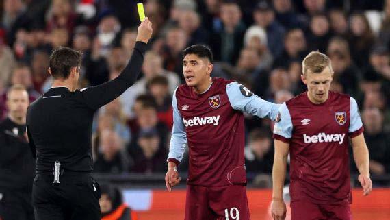 Edson Álvarez es el segundo jugador con más amonestaciones en lo que va de la temporada 2023/2024 en la Premier League, situación que lo ha llevado a perderse tres partidos, el último de ellos el de este martes contra Tottenham. El mexicano, quien en su carrera ha visto 70 tarjetas amarillas, suma 10 con el West Ham y solo es superado por Joao Palhinha, del Fulham.