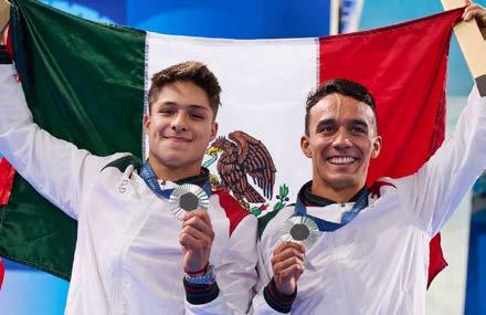 La pareja mexiana compuesta con Juan Manuel Celaya y Osmar Olvera obtuvo medalla de plata en clavados sincronizados desde el trampolín de 3 metros, con puntaje de 444.03, mientras que China se adjudicó el oro (446.10) y el bronce para Gran Bretaña (438.15).