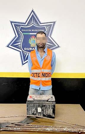 El individuo detenido es Manuel Alejandro R. P., a quien le aseguraron tanto el acumulador de un tractor agrícola, como algunas varillas de acero que había extraído de un rancho.