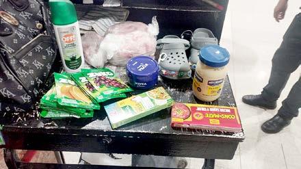 tomado pollo, algunos sobres para agua fresca y condimentos, además de unas chanclas para su nieto.