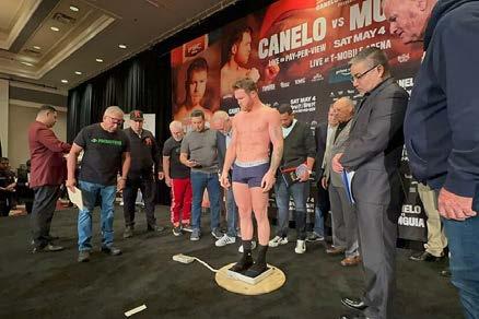 Canelo, número 4 del ranking libra por libra de ESPN, fijó la báscula en 166.8 libras, mientras que Munguía, un excampeón superwelter que tiene récord invicto, bajó de la escala pesando 167.4.