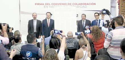 Los gobernadores de Durango y Zacatecas, Esteban Villegas y David Monreal, firmaron convenio de colaboración en materia de seguridad pública; la estrategia entre ambas entidades incluye el intercambiar información y llevar a cabo operativos conjuntos en las zonas limítrofes para la prevención de delitos en carreteras.