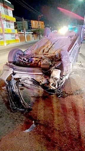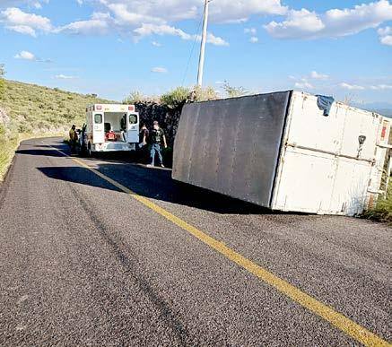 salió del camino y eso provocó que la camioneta acabara volcada sobre la cinta asfáltica; por fortuna, la velocidad no era demasiada y los golpes en ninguno de ellos fueron graves. Al nal, los dos afectados se quedaron en el lugar de los hechos para atender los trámites administrativos, pues no fue necesaria hospitalización para ninguno de ellos.