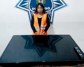 Durango, Dgo.- Como si fue ra “El Pípila”, una joven mujer se echó a la espalda una televisión que, por su tamaño, apenas si permitía distinguirla. El aparato electrónico de 55 pulgadas, sin embargo, lo acababa de robar y fue detenida.