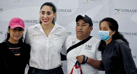 Adriana Martínez Campuza no, subdirectora de Cultura Fí sica de la CONADE, encabezó la entrega de materiales deporti vos, que ya inició en 10 estados: Campeche, Chiapas, Chihuahua, Coahuila, Estado de México, Ja lisco, Morelos, Nayarit, Nuevo