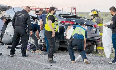 Algunos de los cuerpos quedaron atrapados en el interior de los vehículos, y otros sobre la carretera. Foto La Jornada