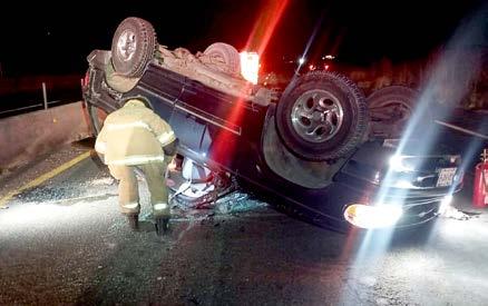 Durango, Dgo.- Tres integrantes de una familia de sinaloenses volcaron en territorio duranguense este domingo por la tarde, lo que ocasionó lesiones que obligaron a la hospitalización de dos de ellos; el percance ocurrió en la salida a Zacatecas.