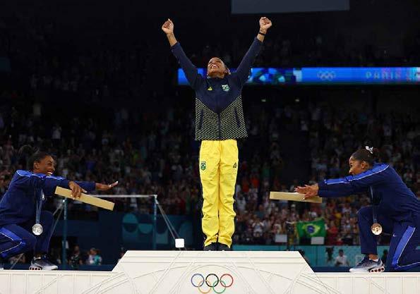Andrade cerró el programa de gimnasia artística de los Juegos Olimpícos de Paris 2024, con una medalla de oro en suelo, por delante de la estadounidense Simone Biles, que se salió dos veces del tapiz en su rutina.