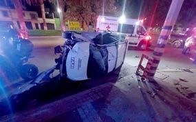 Según su relato, fue al pasar un reductor de velocidad demasiado rápido que perdió el control del frágil vehículo, en el cual impactó contra un poste de concreto y acabó volcado sobre su costado izquierdo.
