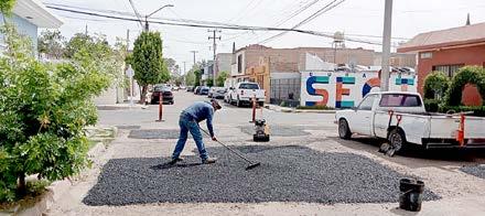 combatiendo el rezago que hay en el tema”, aseguró Toño Ochoa. El titular de Obras Públicas Municipales, Javier Chávez Cibrián, mencionó que mejorar las calles de Durango ha sido una prioridad del actual gobierno local. “Tenemos 10 cuadrillas de bacheo atendiendo a la ciudad. Hemos estabilizado 1.5 millones del rezago de 3 millones de pavimentación; trabajamos sábados y domingos para responder a esta necesidad”.
