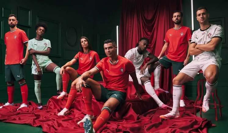 manchas en rojo y verde. Es probable que estos uniformes de Puma sean los últimos que Ronaldo vista como capitán de Portugal, mientras lidera a su país en la clasificación para el Mundial de 2026, que se celebrará en Canadá, México y Estados Unidos. Este torneo será su última competencia internacional, ya que, tras la Eurocopa 2024, declaró que no jugará otra Eurocopa.