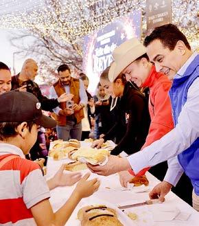 alegría y esperanza. Este 2025 será un año de grandes oportunidades para todos”, destacó Toño Ochoa. Agregó la importancia que tiene el compartir con las y los duranguenses y el trabajo en equipo. “Que podamos seguir abriendo el camino para cumplir los sueños de la gran familia de Durango. Gracias a todos por estar el Día de Reyes compartiendo está rosca”, destacó. Durante el evento, las autoridades compartieron la deliciosa rosca de reyes, elaborada en el