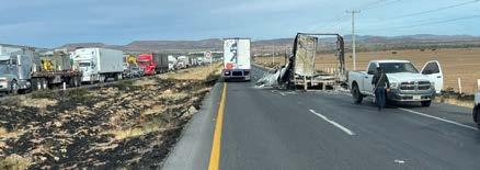En la carretera federal 54, en el tramo Zacatecas-Saltillo, un grupo armado despojó a un chofer de su tráiler, el cual usaron para bloquear la vía a la altura del ingreso a la cabecera de Villa de Cos, para luego prender fuego.