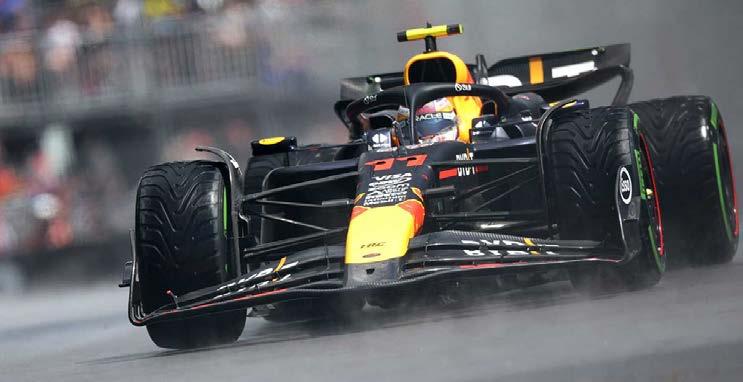 La lluvia condicionó la sesión en el circuito Gilles Villeneuve y Red Bull y el mexicano se guardaron mucho