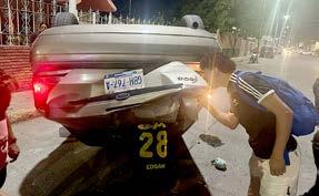 con las cuatro ruedas hacia arriba. El conductor de la Blazer decidió descender de su unidad motriz y acto seguido se retiró de la escena. En tanto que testigos solicitaron apoyo médico para madre e hija, lo que permitió la llegada de la Cruz Roja Mexicana poco después.