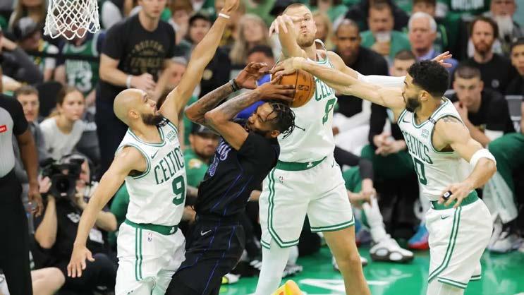 res de Celtics. Boston movió el balón hasta encontrar su mejor opción para encestar. El dominio de los locales en el rubro de las asistencias fue total al terminar con 23 por 9 de Mavs, de ahí que todos los inicialistas que mandó coach Mazzulla, terminaran con doble dígito (más los 20 puntos desde la banca de Porzingis. Y aunque en el tercer cuarto Mavs se pusieron a 8 puntos de empatar el marcador, Boston ajustó para cerrar ese parcial abajo 24-23 luego de que Dallas los tuvo 20-9.