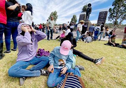 tendré 5 días más para viajar alrededor de la ciudad, yo no conocía y quería venir a un lugar nuevo para mí, para el eclipse, la historia, la cultura, el paisaje y todo”. Deborah, de California, manifestó que ha estado en otros lugares del mundo, sin embargo, quería conocer México, la naturaleza de Durango y montar a caballo y optó por presenciar este importante fenómeno en la tierra del cine, ya que es un área que tendría más minutos de visibilidad.