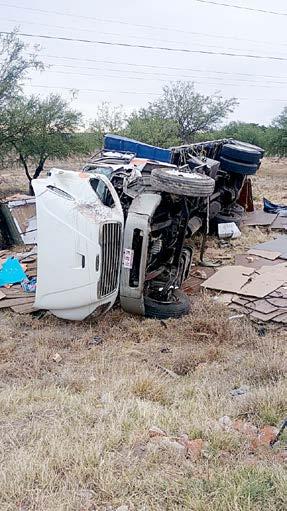 Nombre de Dios, Dgo.- Un chofer originario de Jalisco salió con golpes leves del aparatoso accidente de tránsito en el que el camión que operaba se volcó en el tramo Durango - Nombre de Dios de la carretera a Zacatecas.