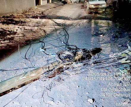 Durango, Dgo.- Vándalos que frecuentan las calles de la colonia Del Bosque, en la zona poniente de la ciudad, son los presuntos responsables de daños ocasionados a la infraestructura de Teléfonos de México. El martes por la noche las autoridades tomaron conocimiento del derribo de un poste de dicha compañía, para lo cual los involucrados le prendieron fuego. El acto vandálico, del cual tomaron conocimiento las autoridades, se registró en la calle Acalpa del referido asentamiento,