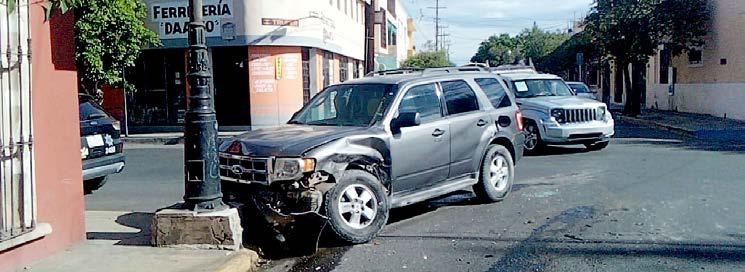 La Escape acabó impactada contra la base de un poste, mientras que el coche terminó parcialmente sobre la banqueta, ambos con daños muy fuertes en su carrocería.
