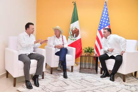 Mazatlán, Sinaloa.- Con la buena relación que tenemos los duranguenses con Sinaloa y Coahuila, potencializaremos mu chos proyectos en beneficio de toda nuestra gente, expresó el go bernador Esteban Villegas Villa rreal al reunirse con el embajador de Estados Unidos, Ken Salazar, donde junto a sus homólogos Rubén Rocha Moya y Miguel Ri quelme Solís, expusieron la voca ción de trabajo en conjunto para sumar a las economías de México y de Estados Unidos.